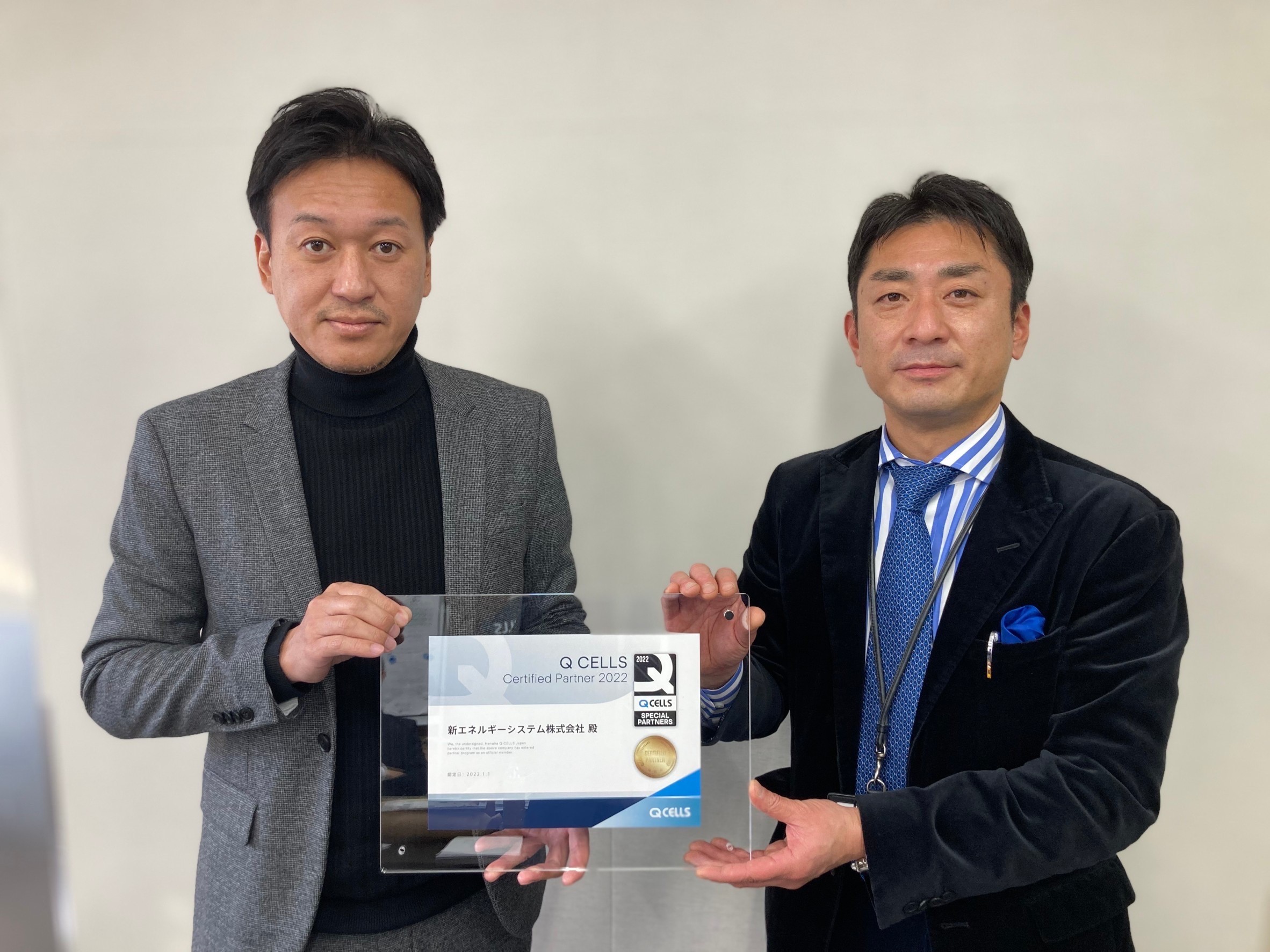 2021年12月21日、弊社北上支店にて、ハンファQセルズジャパン株式会社様より、2022年Qセルズスペシャルパートナーに選出され、弊社代表取締役 田中浩樹に認定証授与されました。スペシャルパートナーは、全国で4社しか選出されません。その中の1社であること誇りに、今後とも販売活動等全力で取り組みます。本日は表彰ありがとうございました。