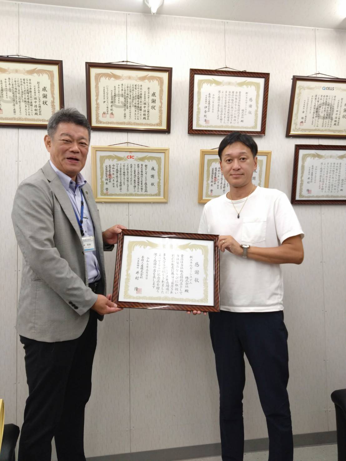 昨日弊社代表取締役 田中浩樹、長府工産株式会社様より、販売活動優秀とのことで表彰されました。新エネルギーシステム株式会社は省エネルギー機器の販売施工管理を通じ、お客様光熱費の節約等、お役に立つご提案させていただきます。補助金申請等お気軽にお問い合わせください。