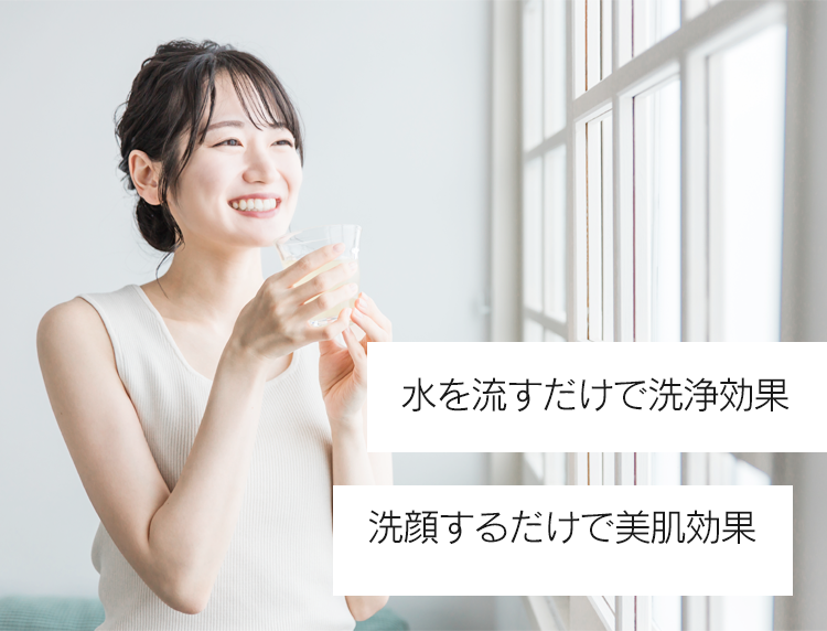 ウルトラファインバブル水とは、ナノサイズの極小の気泡のことで、汚れの付着を防止、付着した汚れの剥離も期待できます。 簡易な工事を行うことで家中全ての水がウルトラファインバブル水になります。 それにより、お風呂時間はお家がエステ感覚に、うがい歯磨きの口内ケアも充実、お水を流すだけでお家をきれいに保て、お掃除時間の短縮になるなど、様々な効果が期待できます。