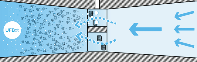 UFB DUAL™は、水圧低下の少ない高効率キャビテーション方式を採用しています。